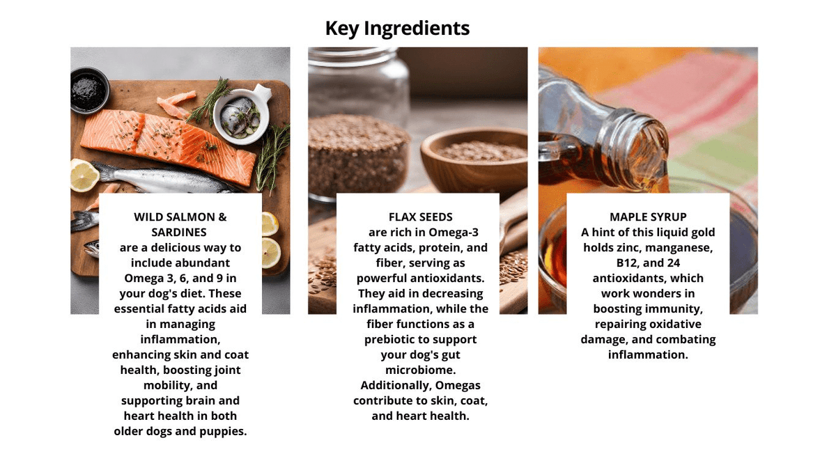 - Brain Health: Omega-3s support cognitive function and brain development, crucial for puppy brains and seniors, alike.