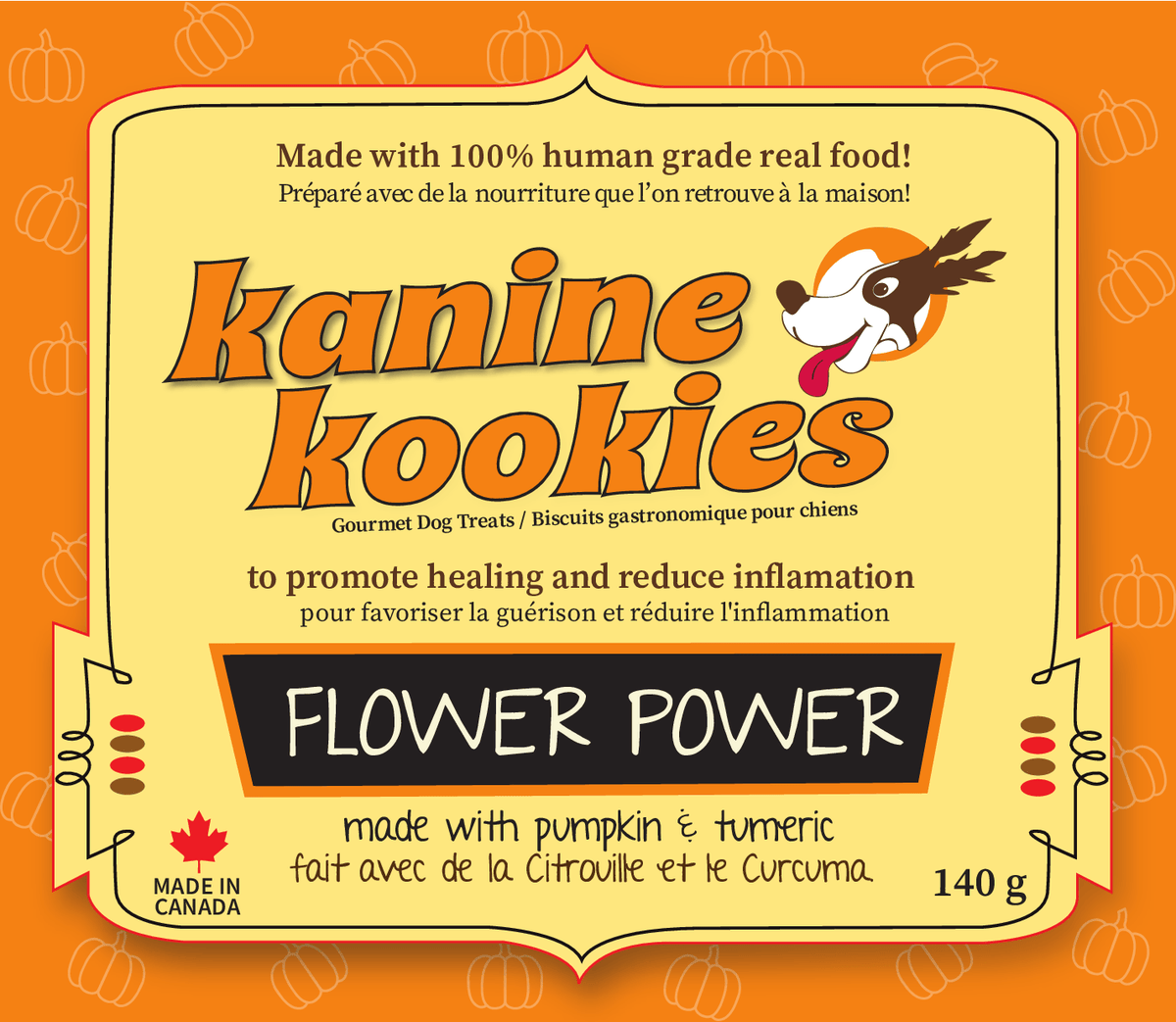 Discover the power of Kanine Kookies' Flower Power Dog Treats! This delightful blend of pumpkin and turmeric is specifically formulated to be gentle on sensitive stomachs while providing natural anti-inflammatory properties that can help alleviate discomfort associated with allergies and arthritis.